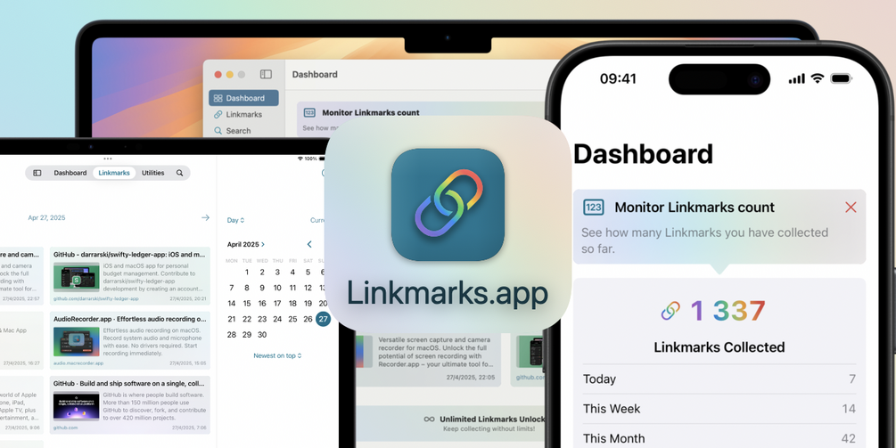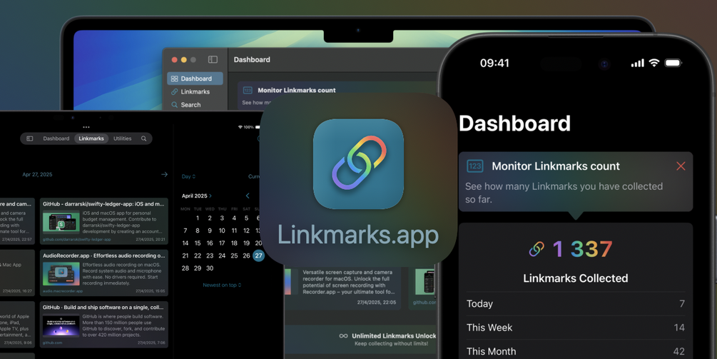 You can browse your collection of links by day, week, month, etc. The app automatically synchronizes data between your devices using iCloud. You can also sync the links with your Calendar—this feature originates from another project I made about six years ago and was an inspiration for creating Linkmarks.app. Thanks to the included Share Extension, you can easily add links from other applications, like Safari.